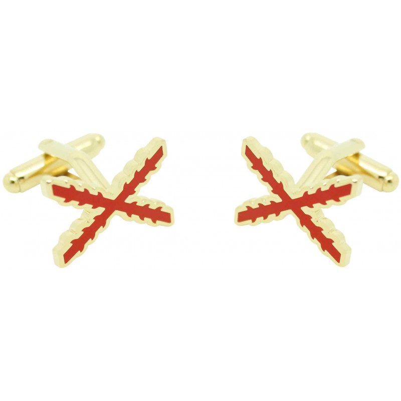 هذه أزرار قميص يمثلون صليب بورغونيا أو هاسبا من بورغونيا وهو تمثيل لـ صليب القديس أندرس حيث تظهر جذوع الصليب مع عقداتها في أماكن قطع الأغصان.