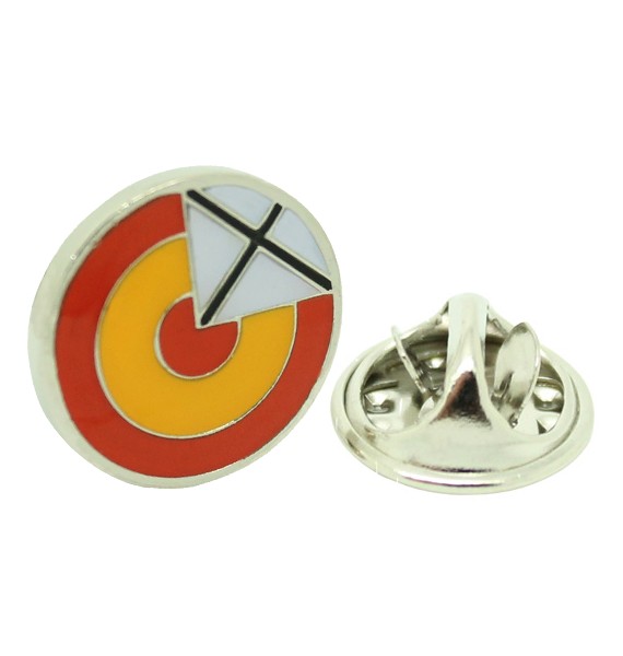 Flap pin spain Spain with Cruz de San Andrés made of steel and bathed in rhodium with enamel in the colors yellow and red representing the martyrdom of Saint Andrew the Apostle and is the representation of humility and a variant to the Cross of Saint Andrew is the Cross of Burgundy, reason why this rosette is visualized mainly in military airplanes and pilots.