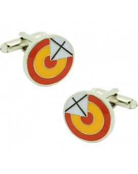 Cufflinks for Spain rosette shirt with Cruz de San Andrés made of steel and bathed in rhodium with enamel in the yellow and red colors that represents the martyrdom of Saint Andrew the Apostle and is the representation of humility and a variant to the Cross of Saint Andrew is the Cross of Burgundy, reason why this rosette is visualized mainly in military airplanes and pilots.