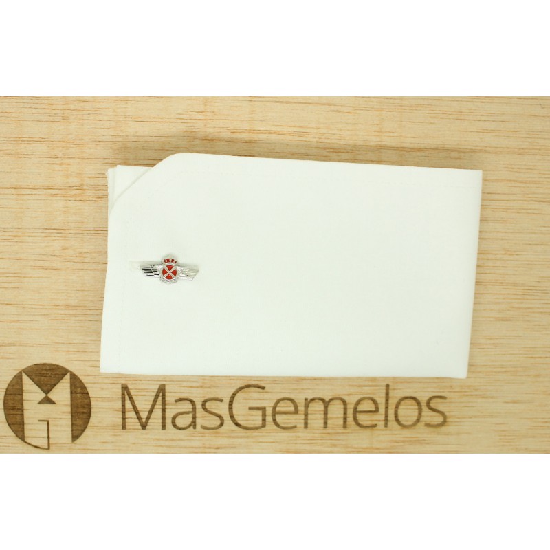 Rokiski Air Army shield shirt cufflinks made of steel, rhodium-plated and enamelled with the colors of the Air Force emblem, representing the name of Luis Rokiski a famous engraver who made the breast emblems for all aviators from 1939 and 1965 of that time.