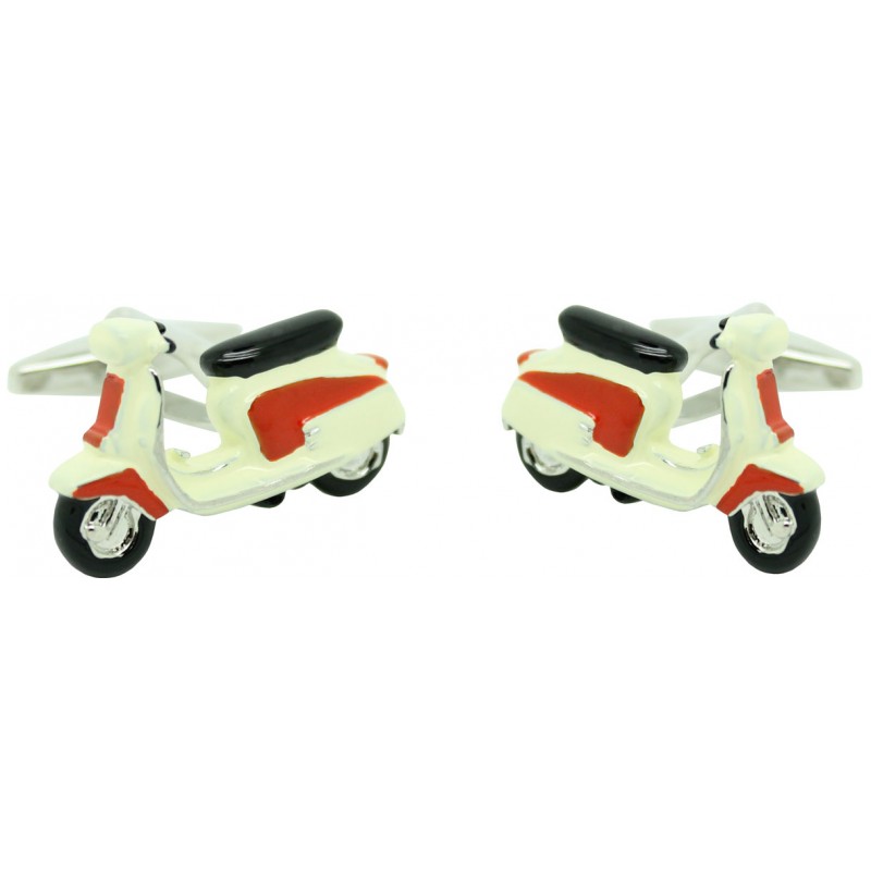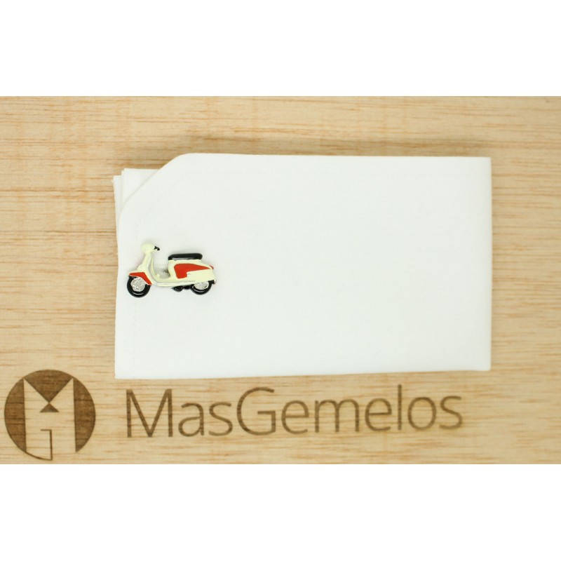 Cufflinks for Moto vespa 3D shirt made in steel and bathed in rhodium, enameled with red and white colors that represent the iconic original scooter in three dimensions.