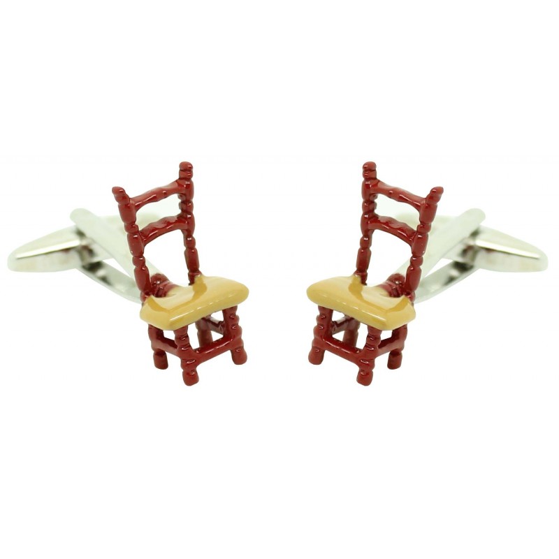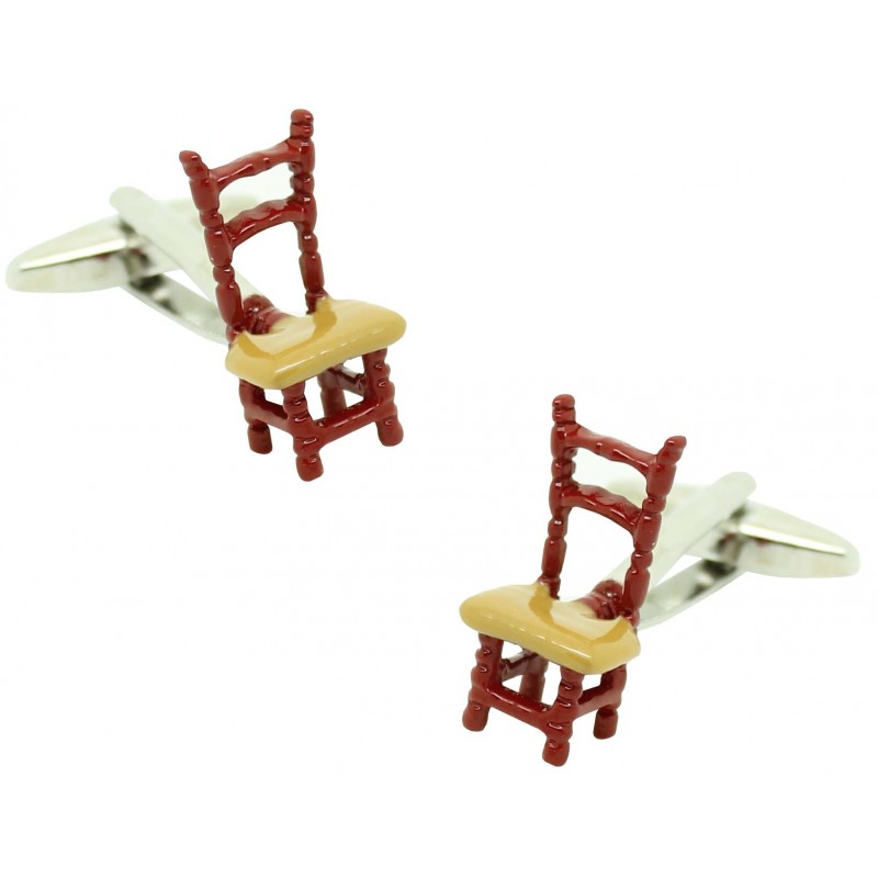 Cufflinks of flamenco chair made of steel and rhodium-plated in brown that represents the rustic flamenco chair that is fashionable.