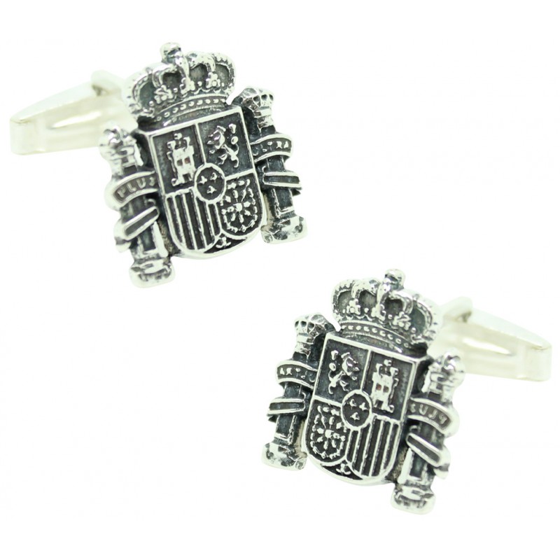 أزرار أكمام قميص درع إسبانيا مصنوعة من الفضة الإسترليني عيار 925.