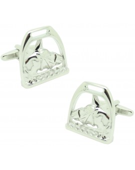 Cufflinks for Stirrup shirt with horse made of steel and rhodium plated that represents the stirrup and the head of a horse inside.