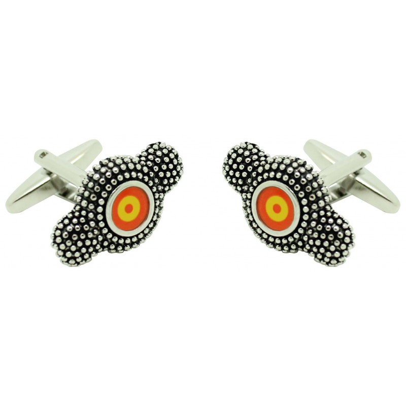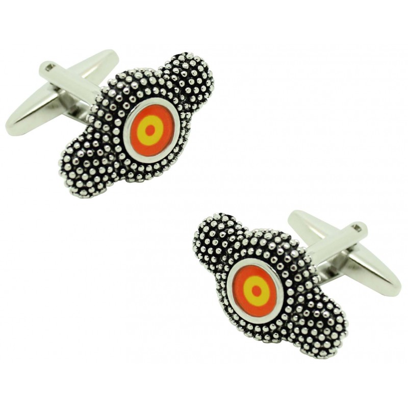 Cufflinks for the Montera bullfighter shirt and Spain flag made of steel and rhodium plated representing the shape of the bullfighter montera with a cockade flag in the colors of Spain.