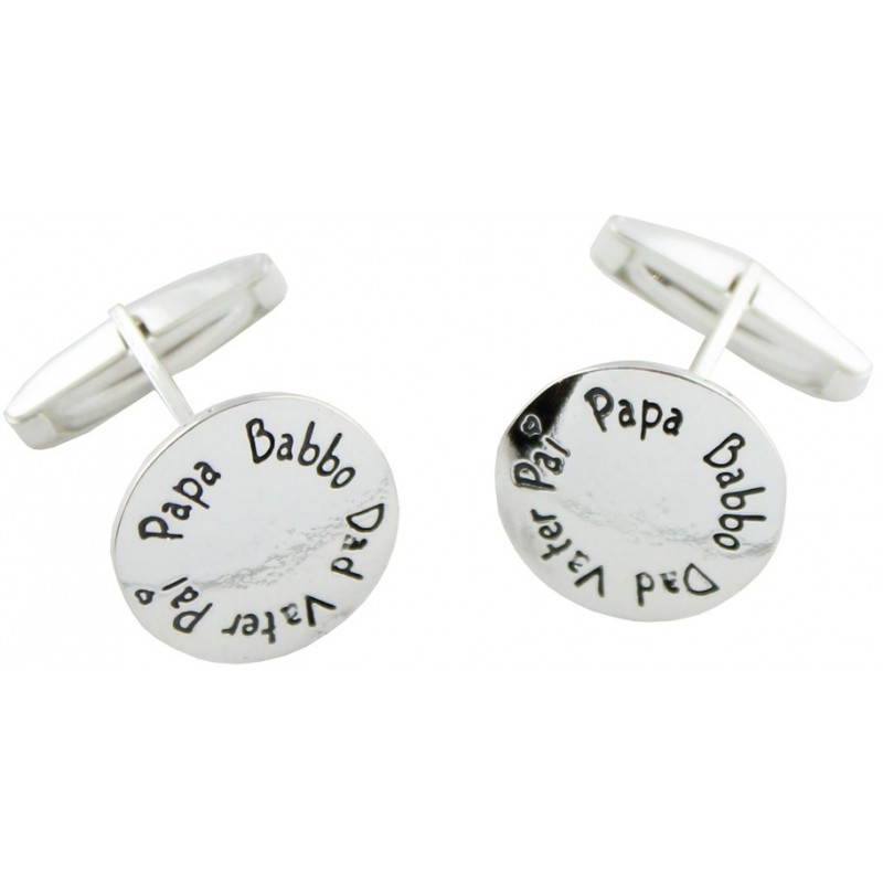 أزرار أكمام مصنوعة من الفضة الإسترليني عيار 925 تحمل كلمة "أب" بعدة لغات.