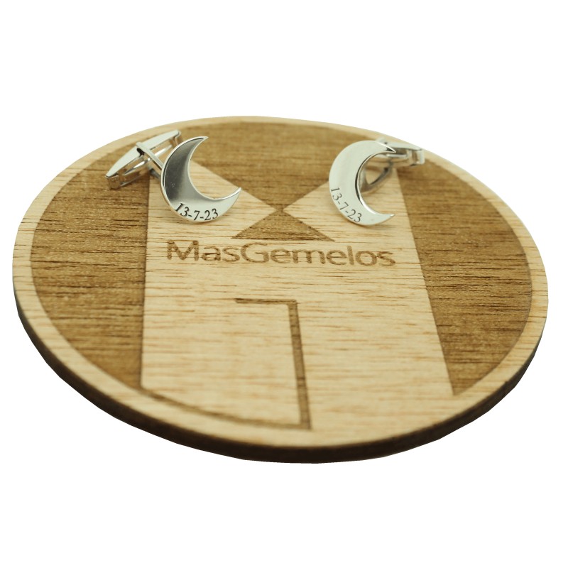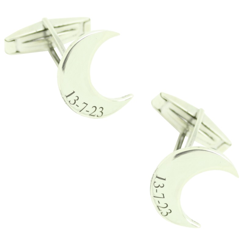 custom made cufflinks half moon with date 925 sterling silver