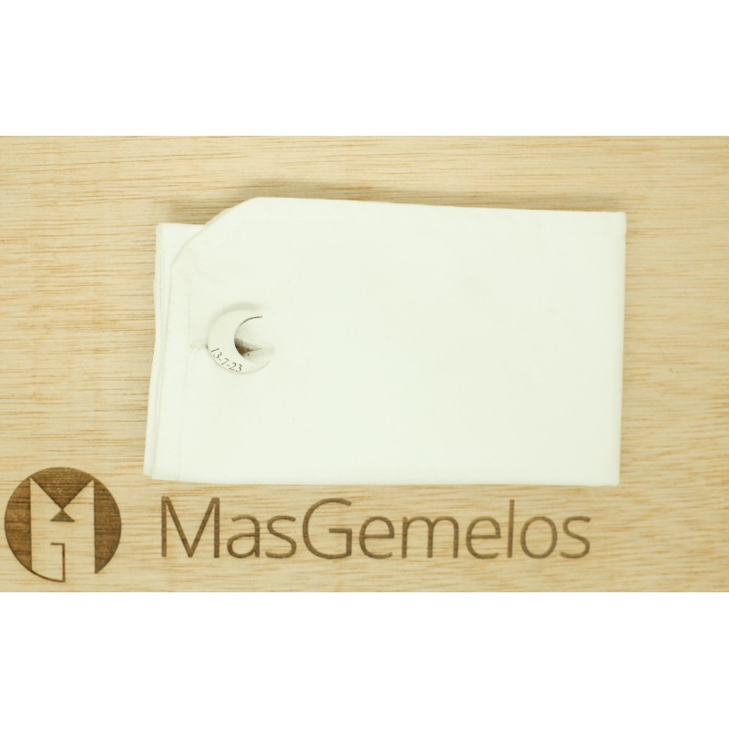 Silver Shirts of Law Half Moon Design Crafted in Silver 925, with date "with possibility to incorporate another detail or words.