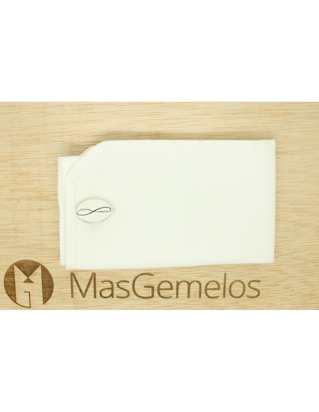التوائم للقميص من الفضة الشكل البيضاوي مصنوعة يدوياً في الفضة 925, ، تصميم رمز اللانهاية مع اسمين.