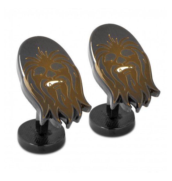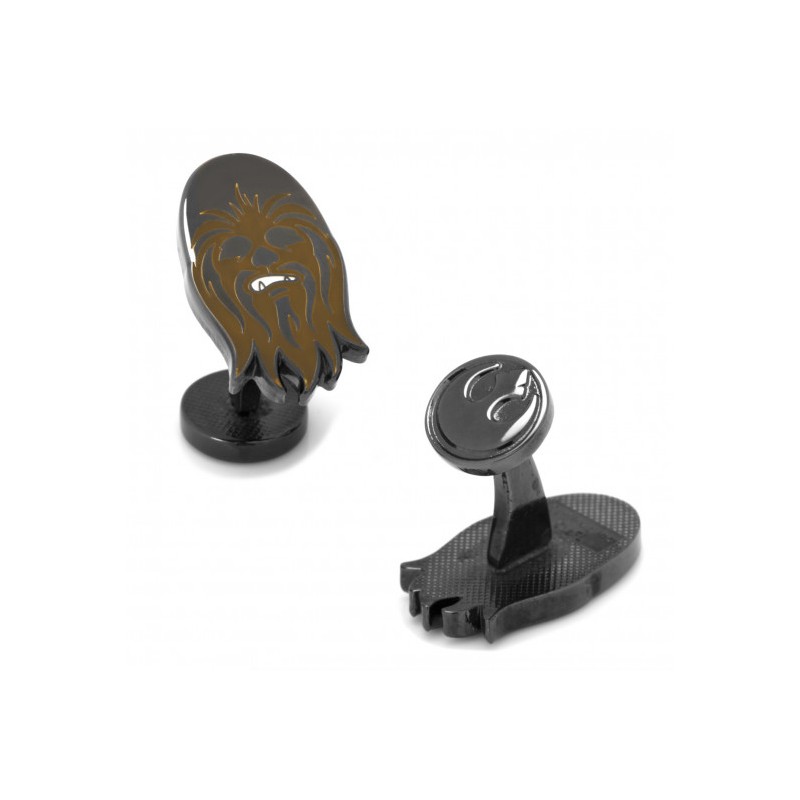 Chewbacca Grin Star Wars Cufflinks. Plated base metal and enamel. Fixed logo backing.