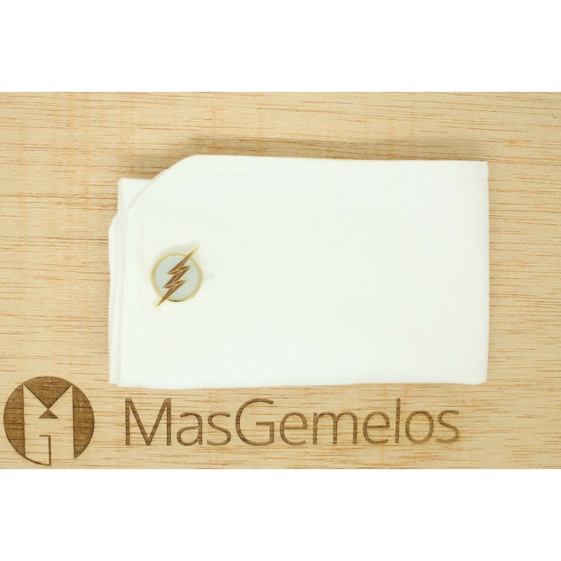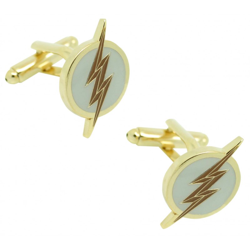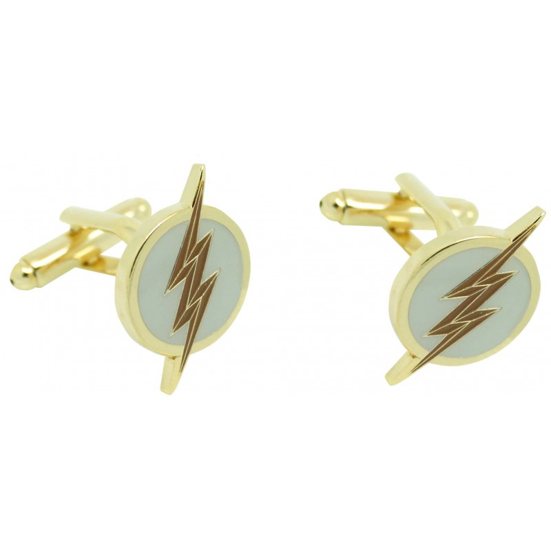 Cufflinks for the Gordon Gordon II shield shirt made of steel and rhodium plated representing the Gordon Gordon version II shield, with a white background and lightning inside.