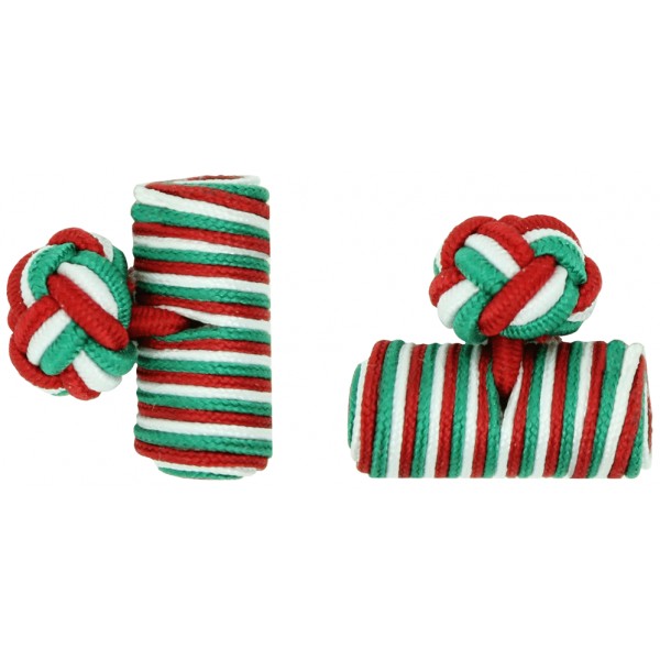 Green, White and Deep Red Silk Barrel Knot Cufflinks