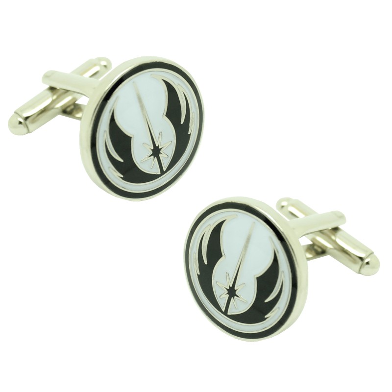 التوأمين للقميص مصنوعة من الصلب ومغطاة بالروديوم، والتي تمثل رمز النظام الجيدي من حرب النجوم.