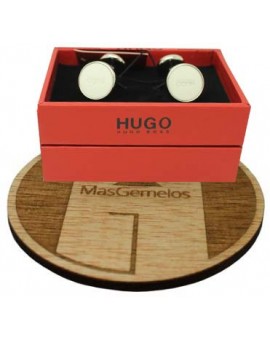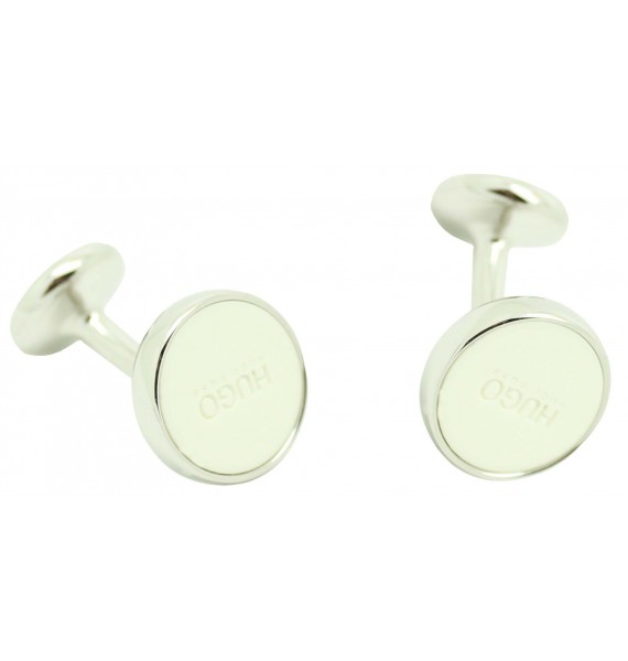 This roundel white classic HUGO design is presented, a hand-polished piece with a logo engraved on a fixed closure that provides a subtle distinction being one of the most famous luxury brands for men in suits and accessories.