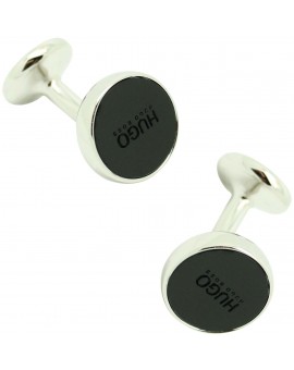 This roundel black classic HUGO design is presented, a hand-polished piece with a logo engraved on a fixed closure that provides a subtle distinction being one of the most famous luxury brands for men in suits and accessories.