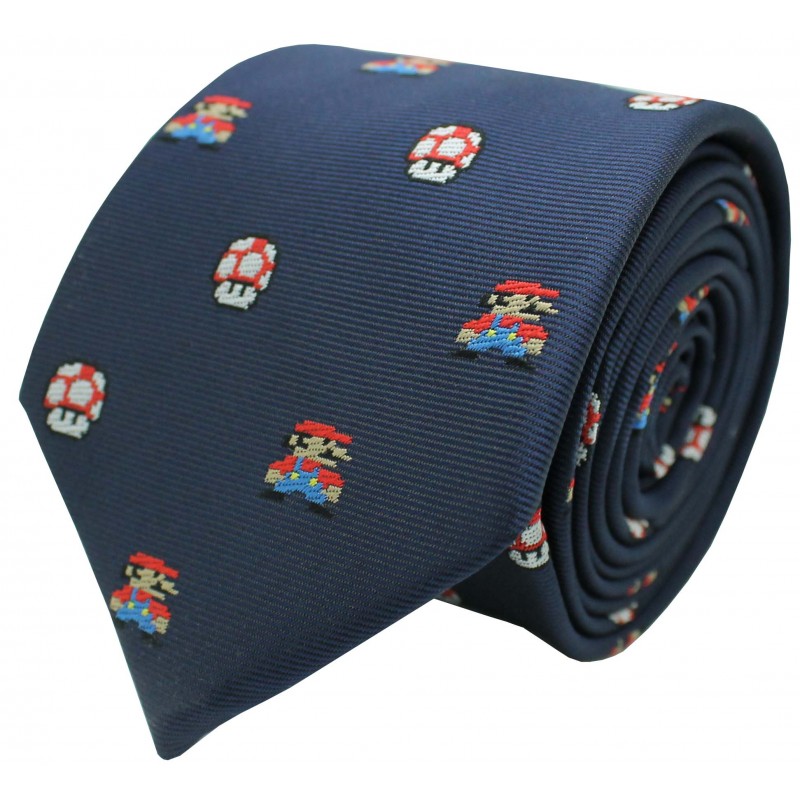 Corbata of Mario Bros and Seta, made of microfiber in marine blue with motifs of Mario Bros animated of pixels and mushrooms with a 7 cm shovel size.