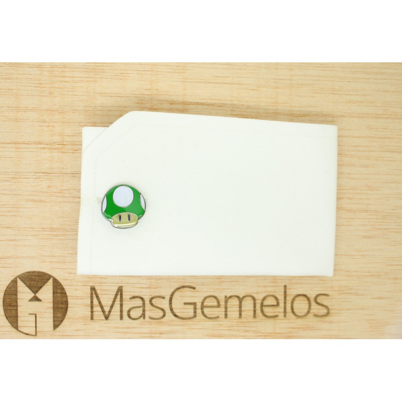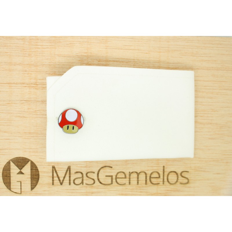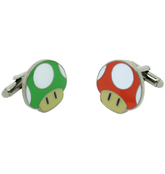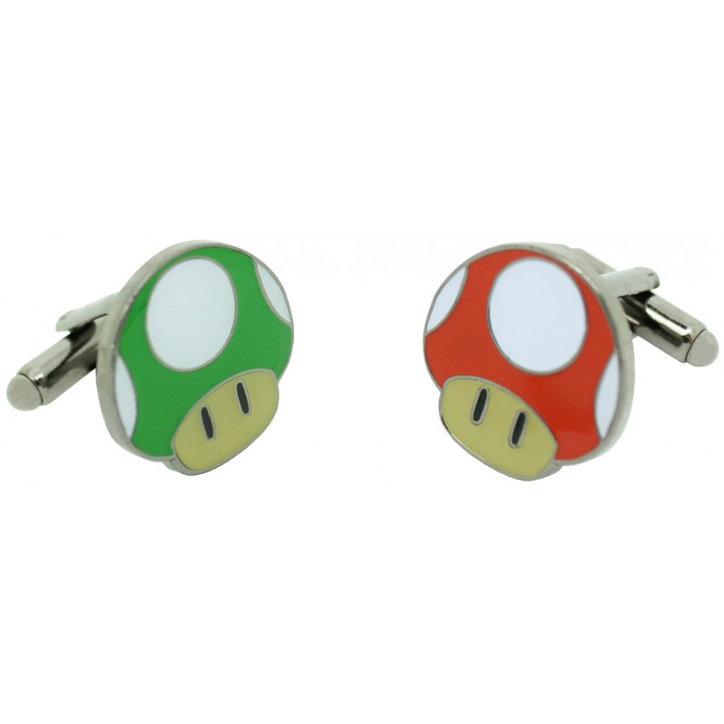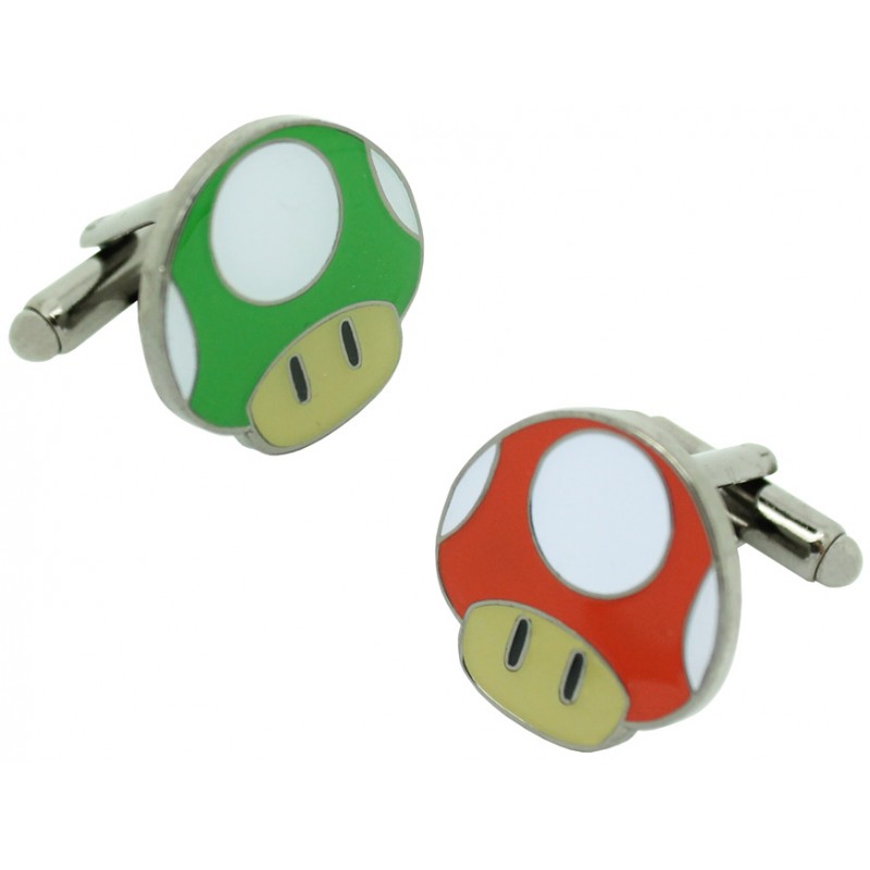 Super Mushroom and 1-UP Mushroom cufflinks are two types of mushrooms from Super Mario Bros. video game. Super Mushroom (red), its first and most common effect is causing Mario or Luigi to turn into their Super form. And 1-UP Mushroom (green) give the player an extra life