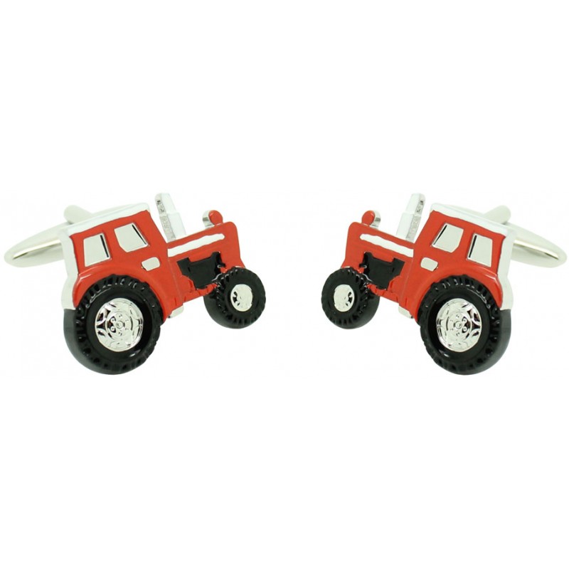 Rote Manschettenknöpfe mit landwirtschaftlichem Traktor