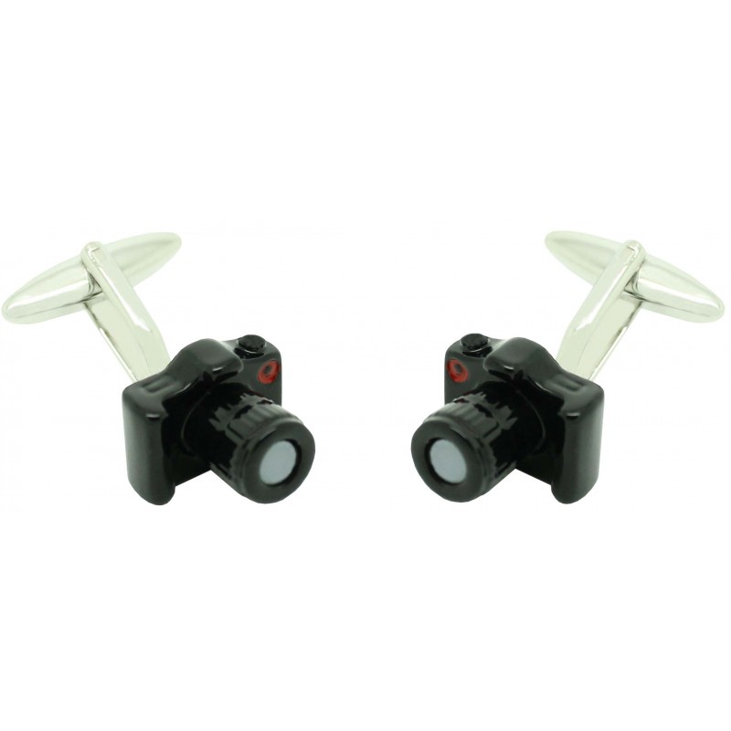 Schwarze Hemd-Manschettenknöpfe mit Spiegelreflexkamera