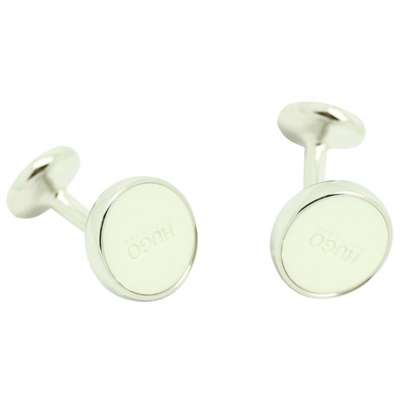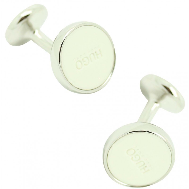 Runde klassische weiße Manschettenknöpfe von Hugo Boss