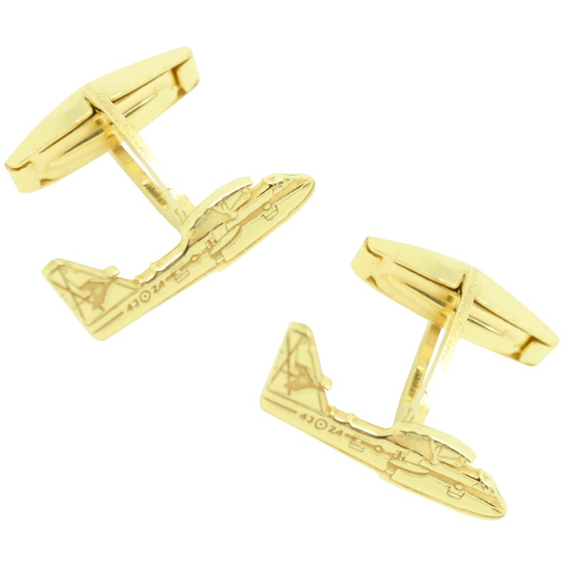 Personalisierte Manschettenknöpfe für Hemden mit Amphibienflugzeugen aus 925 Sterling Silber und vergoldet
