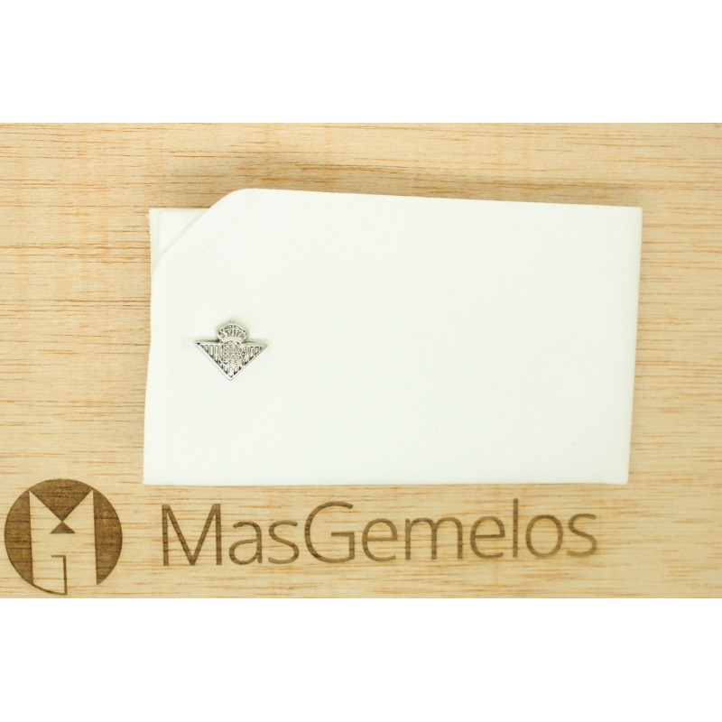 Zwillinge für Club Betis Platedo aus Stahl gefertigt und in Rhodium überzogen, das das Wappen des spanischen Fußballvereins mit Sitz in der Stadt Sevilla, Andalusien darstellt.