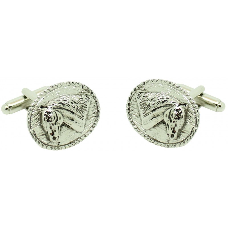 Zwillinge für Hemd Figure ovalen Pferd aus stahl gefertigt und mit rhodium beschichtet, das den kopf eines pferdes in einem oval darstellt.