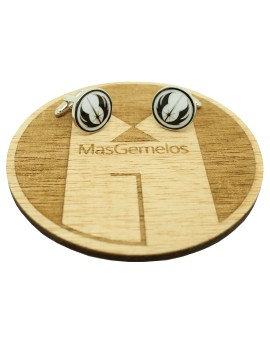 Twins für Hemd Symbol Orden Jedi aus Stahl gefertigt und im Rodium gebadet, das die Star Wars Orden Jedi Symbol darstellt.