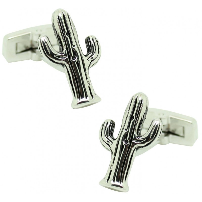 Zwillinge für Hemden Silber Kaktus aus Stahl und gebadet in Rodium, die die Form eines westlichen Kaktus darstellt.