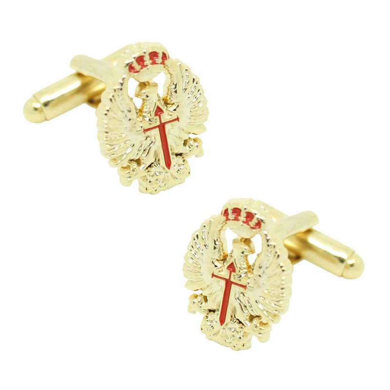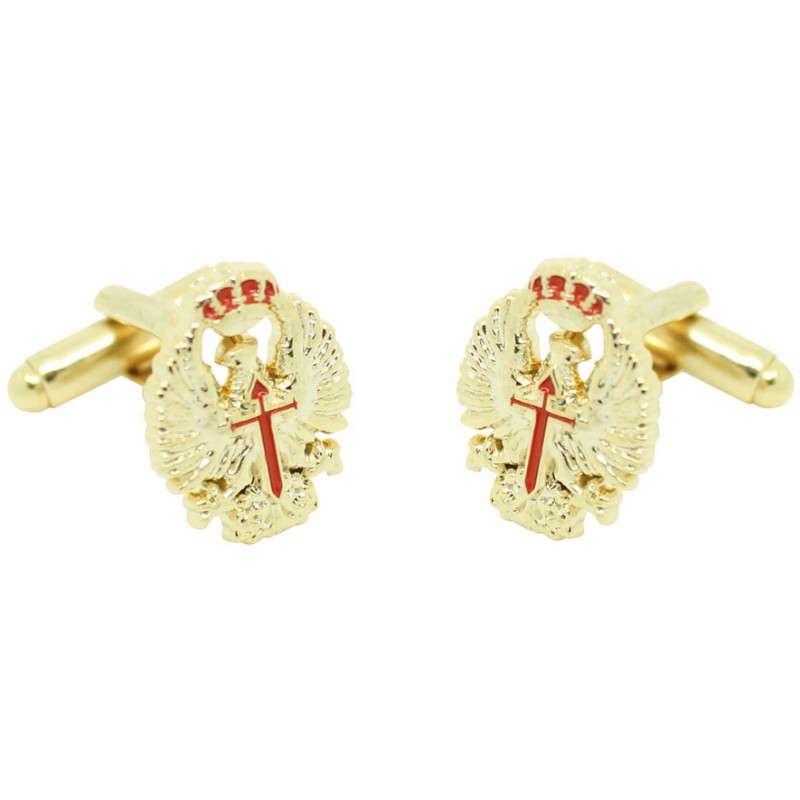 Cufflinks for the shield shirt of the Army of Earth de España made of steel, bathed in rhodium and enamelled with the colors of the coat of arms of the Legion and the flag of Spain in black background representing the shield of the terrestrial branch of the Spanish Armed Forces , one of the oldest active armies in the world, having been in service since the 15th century.