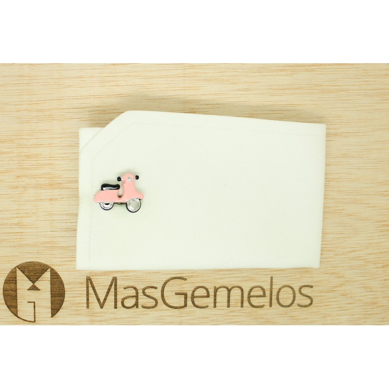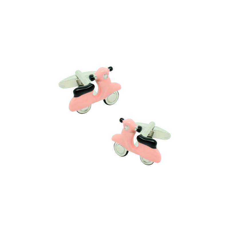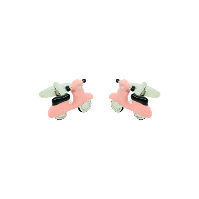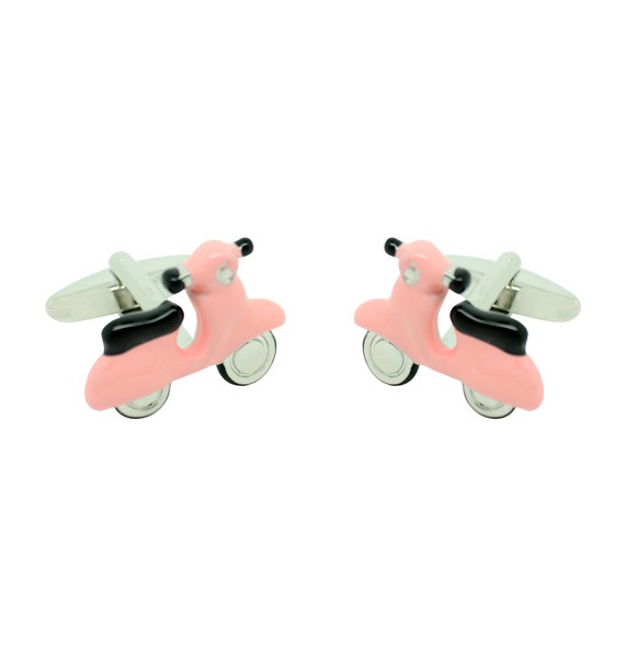 Scooter motorbike cufflinks enamelled in pink and black colour.