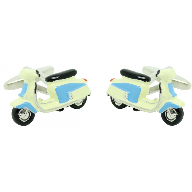 Cufflinks for Moto vespa 3D shirt made in steel and bathed in rhodium, enameled with blue and white colors that represent the iconic original scooter in three dimensions.