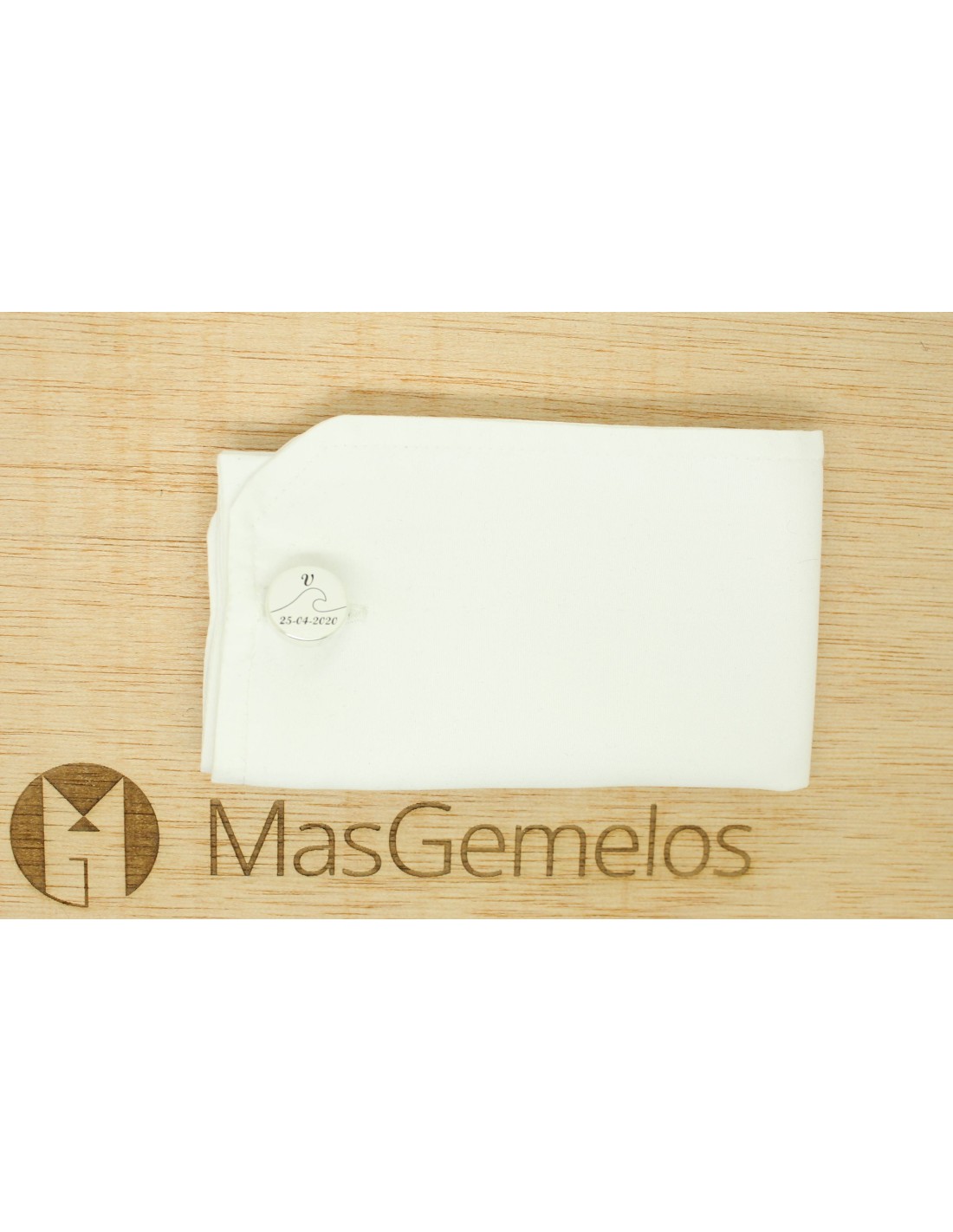 Personalized round volume cufflinks with initials, wave design, 925 silver