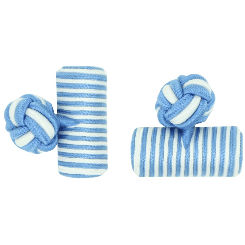 Gemelos Elásticos de Seda con forma de barril en color azul claro y blanco.