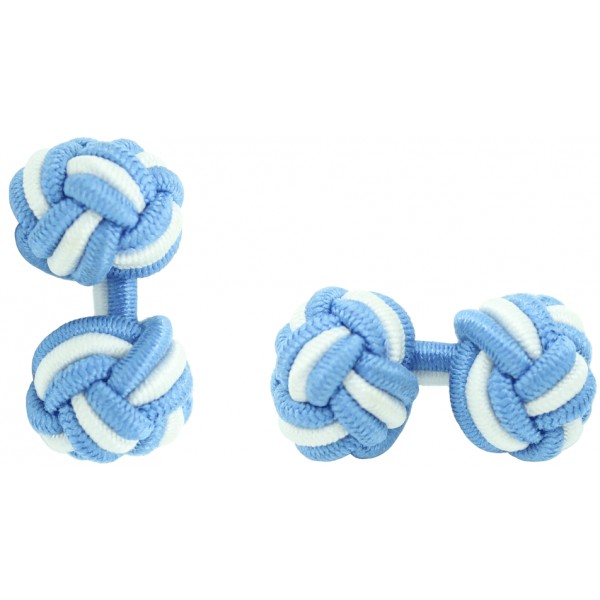 Gemelos Elásticos de Seda con forma de bola en color azul claro y blanco.