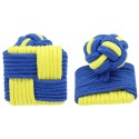 Gemelos Elásticos de Seda con forma de cuadrado en color azul y amarillo.