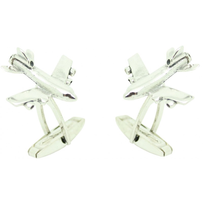 Gemelos para camisa Avión de viajeros Plata de ley 925 realizados en plata de ley 925 artesanalmente y pulido a mano, que representan la forma de un avión de pasajeros con todos los detalles.
