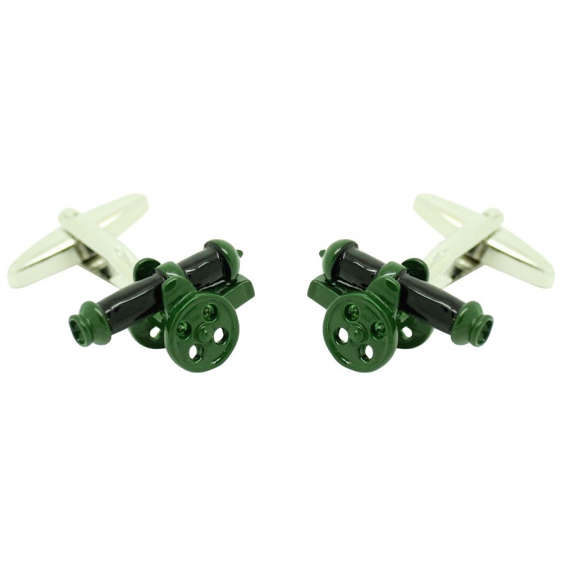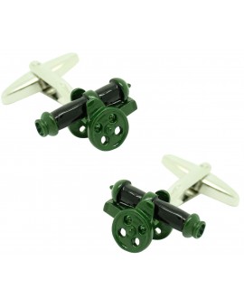 Gemelos para camisa Cañon de artillería realizados en acero y bañado en rodio que representa la forma de un cañon de artillería militar.