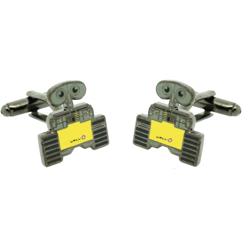 Gemelos para camisa WALL-E realizados en acero y bañado en rodio, esmaltado en color que representan la imagen del robot que trabaja recogiendo tierra y que quiere iniciar una gran búsqueda a través de la galaxia de la mano de Eva su amiga Robot moderna.