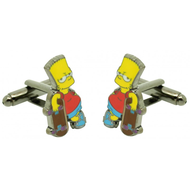 Gemelos para camisa Bart Simpson realizados en acero y bañado en rodio que representa al personaje de la serie de los Simpsons
