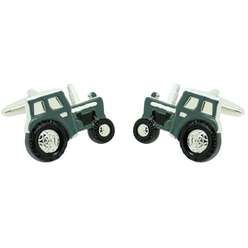 Gemelos para camisa Tractor verde militar agrícola realizados en acero ,bañado en rodio y esmaltado en color verde militar que representa un Tractor que se utiliza para accionar otras herramientas como el arado, la cosechadora, la segadora o el remolque.