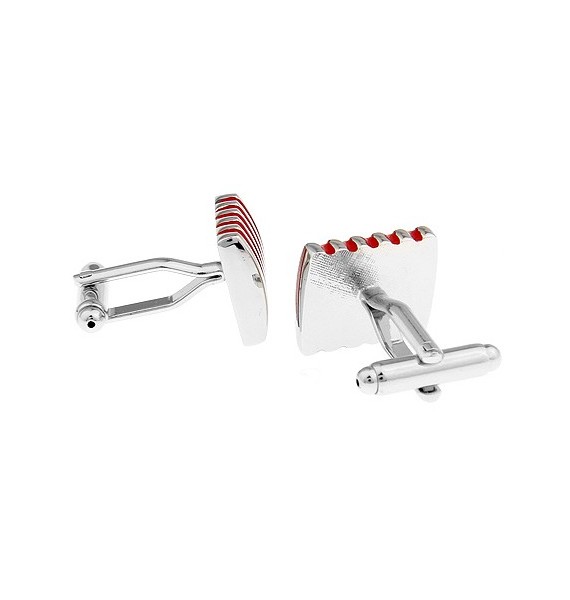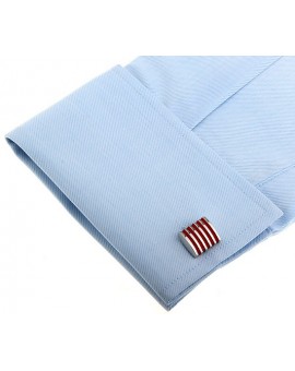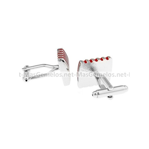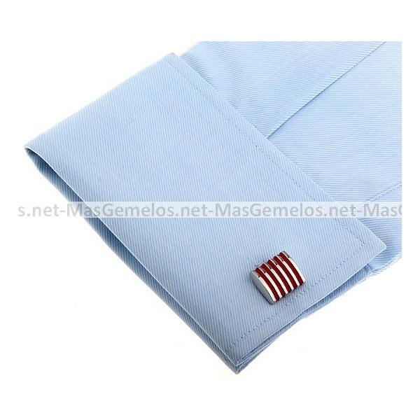 Gemelos para camisa Cuadrado Rayas Plata y Rojo