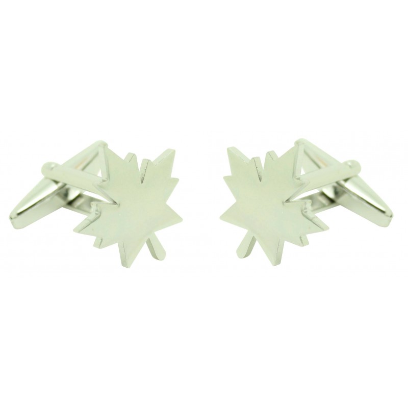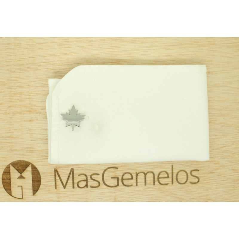 Gemelos para camisa hoja de arce realizados en acero y bañado en rodio que representa la forma de las hojas de un arbol.