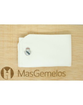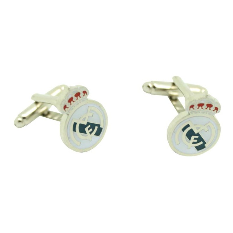Gemelos para camisa Real Madrid plated realizados en acero y bañado en rodio que representa la forma del escudo del Real Madrid liso plateado.