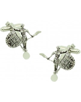 Gemelos para camisa Giraldillo realizados en acero y bañado en rodio que representa la escultura que corona la Giralda de Sevilla en 3D.