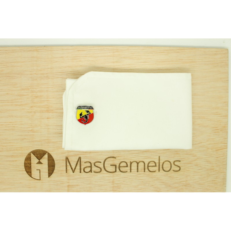 Gemelos para camisa logo casa de coches Abarth realizados en acero y bañado en rodio que representa la famosa compañia de automóviles italiana de competición.