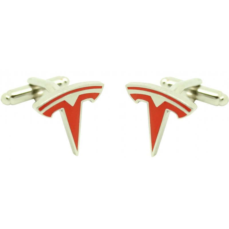 Gemelos para camisa de Tesla realizados en acero y bañado en rodio, esmaltado en rojo del fabricante de vehículos electrícos lider en el mundo.