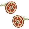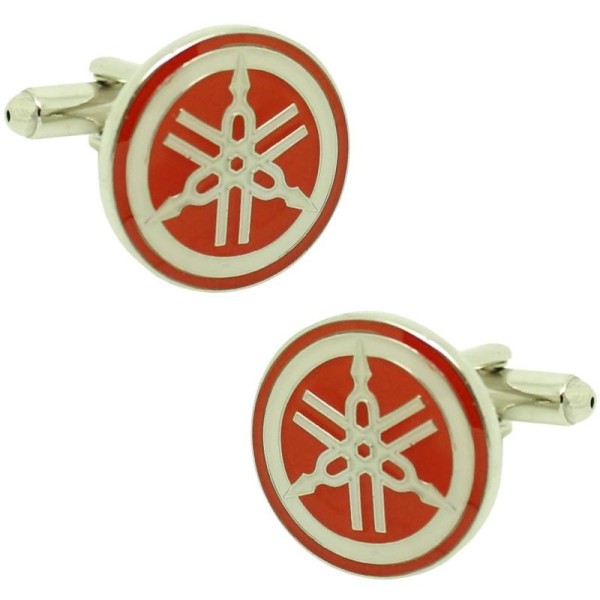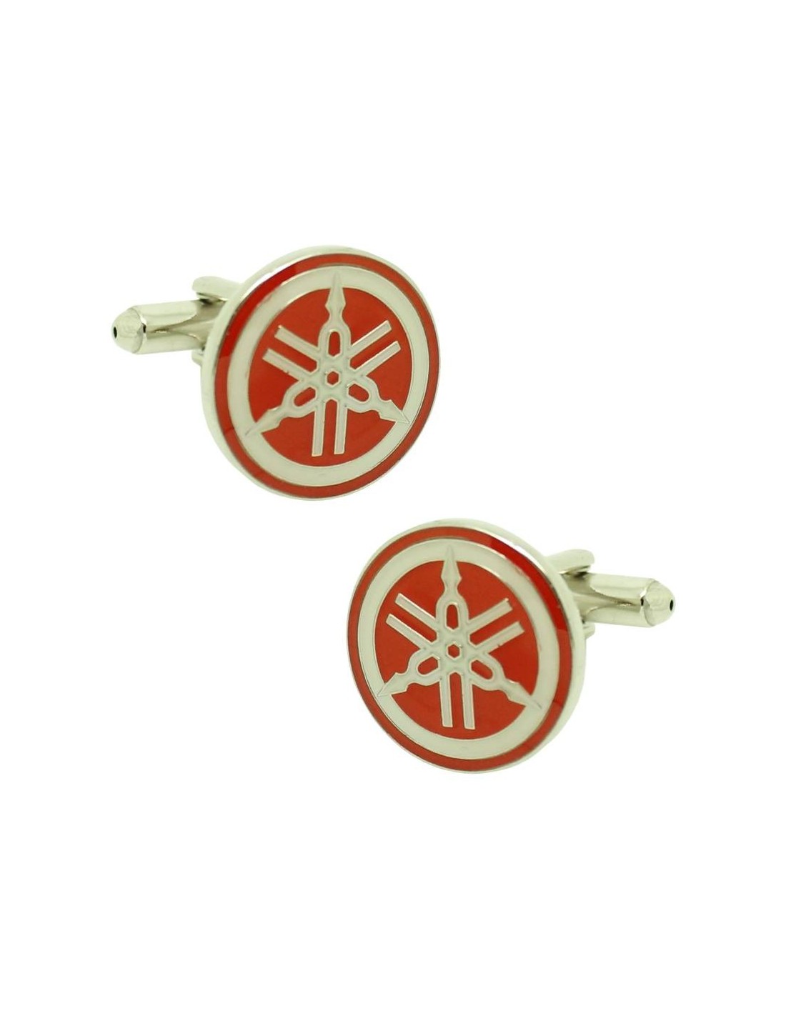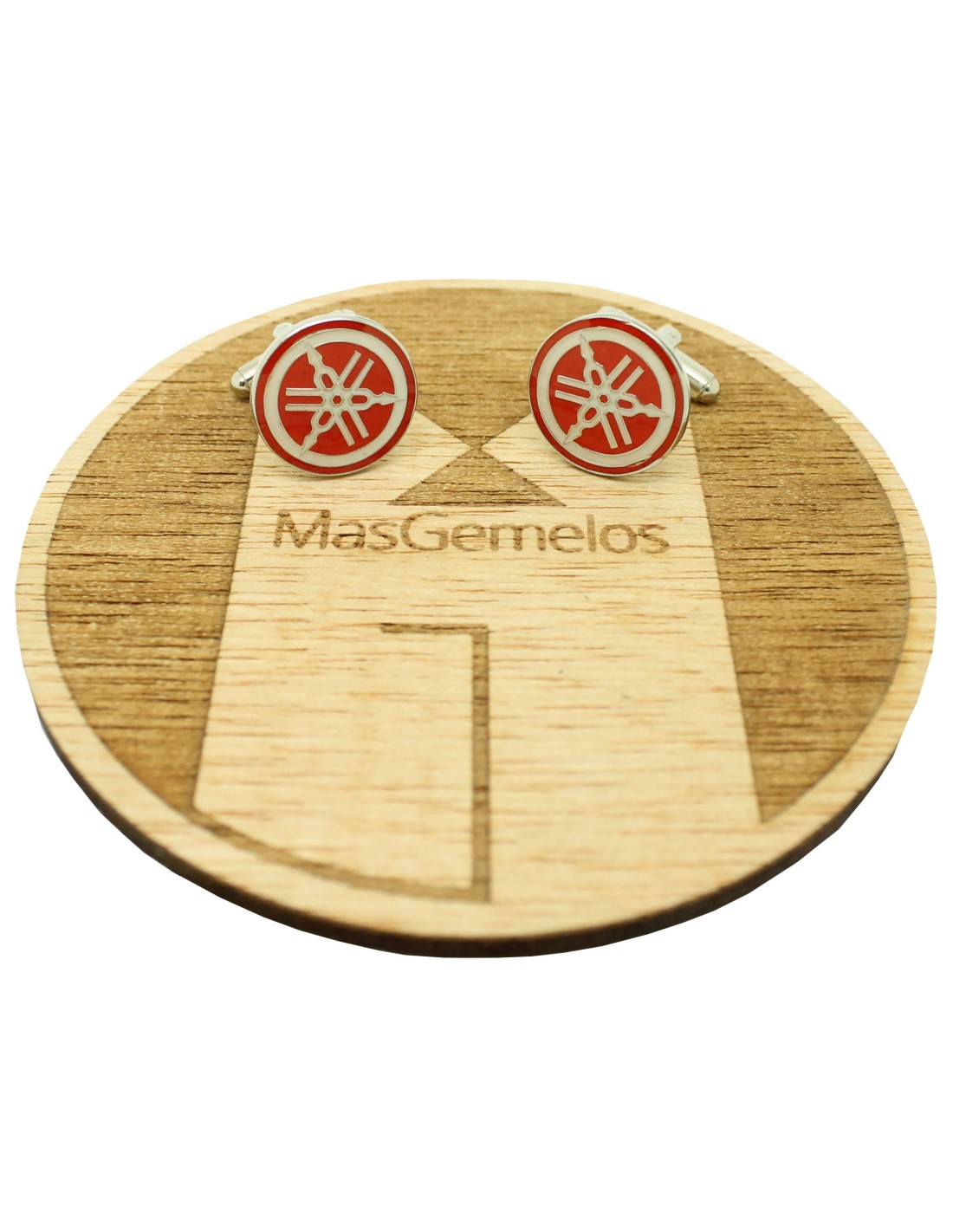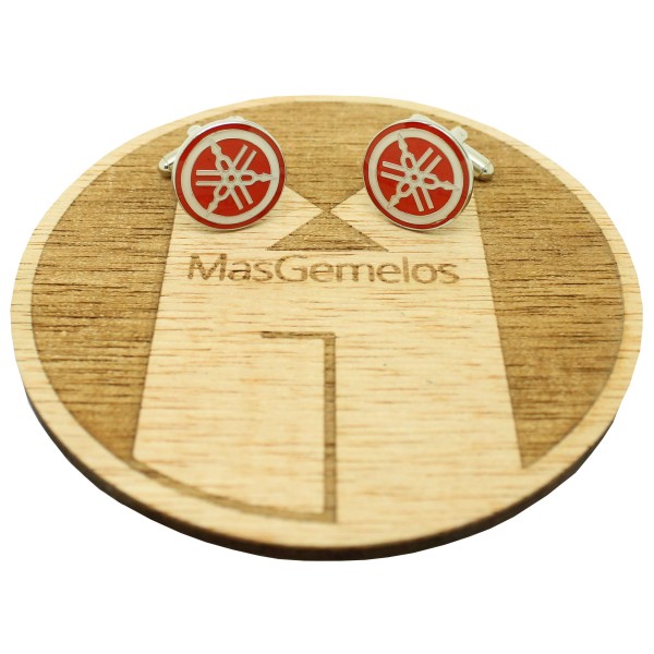 Gemelos para camisa emblema Yamaha rojo, realizados en acero con baño en rodio que representa al logotipo de Yamaha esmaltado en rojo.