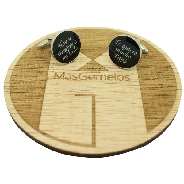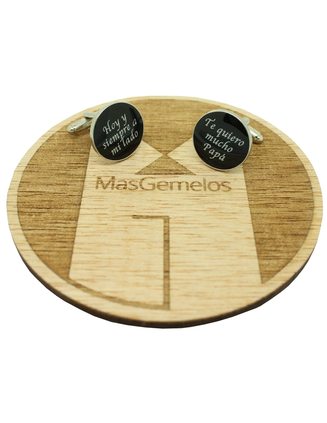 Gemelos de camisa boda con frase Hoy y Siempre a mi lado y Te quiero mucho papá - negro