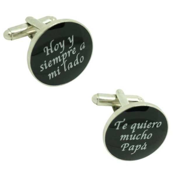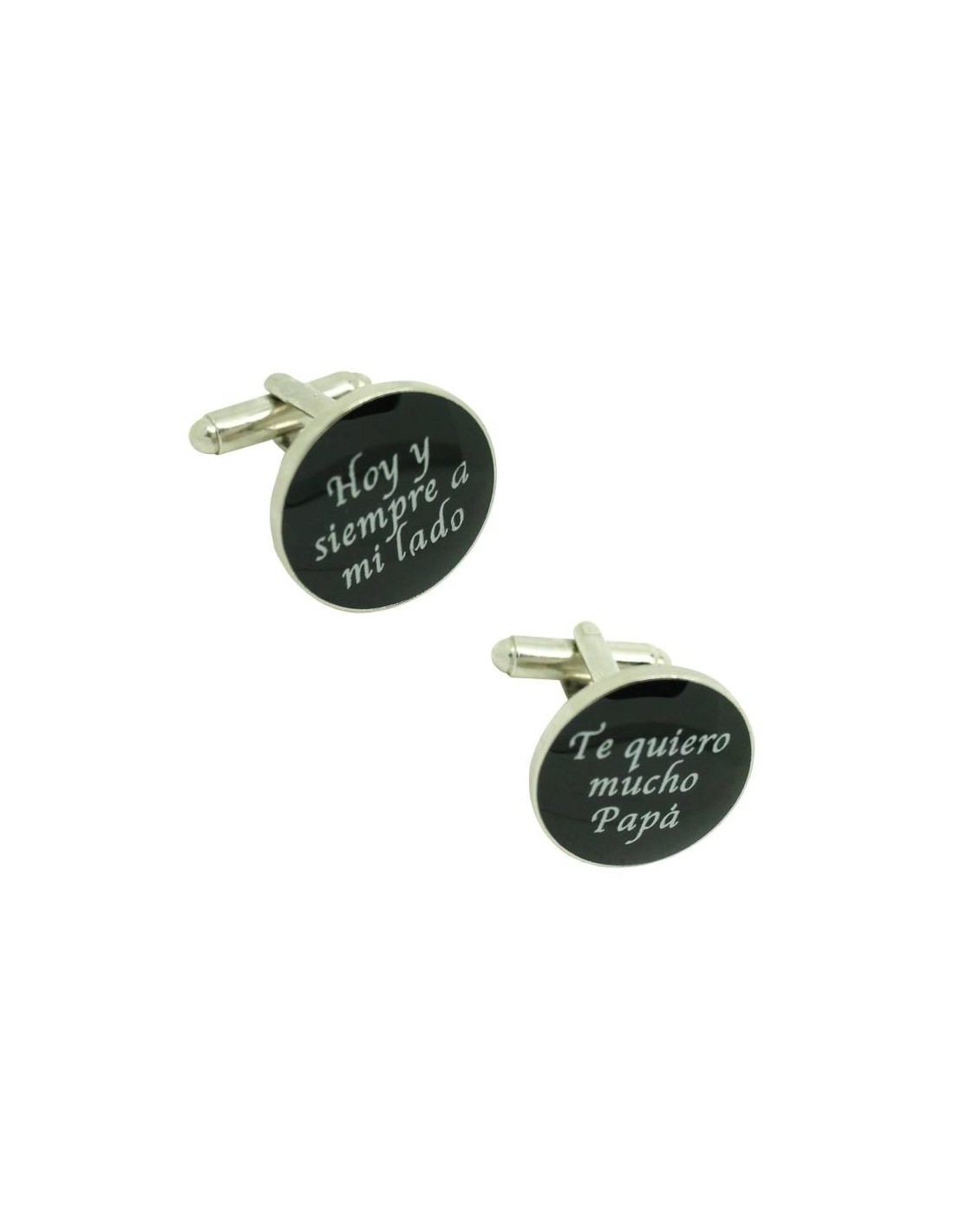Gemelos para camisa de Boda con frase Hoy y Siempre a mi lado y Te quiero mucho Papá realizados en Alta calidad de acero y bañado en rodio color negro.